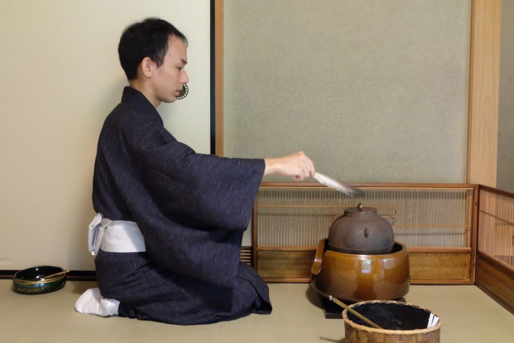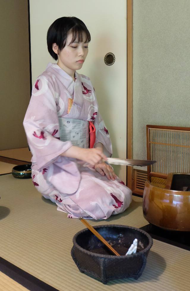 炭火の釜の湯で茶を点て喫み