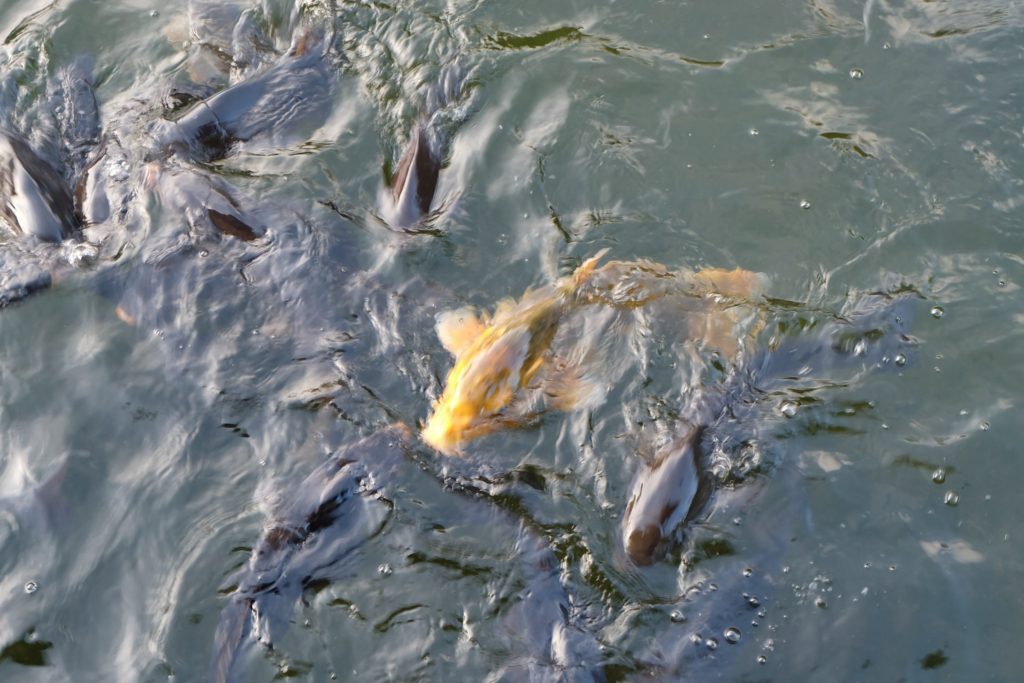 池に注ぐ滝の声と