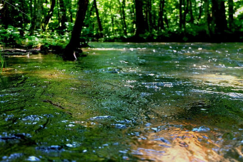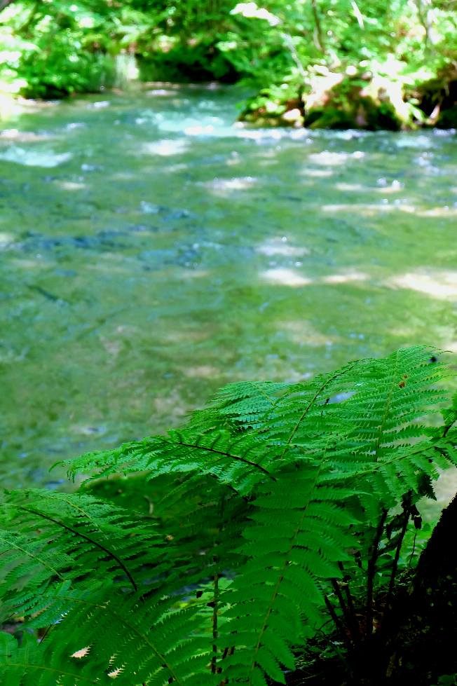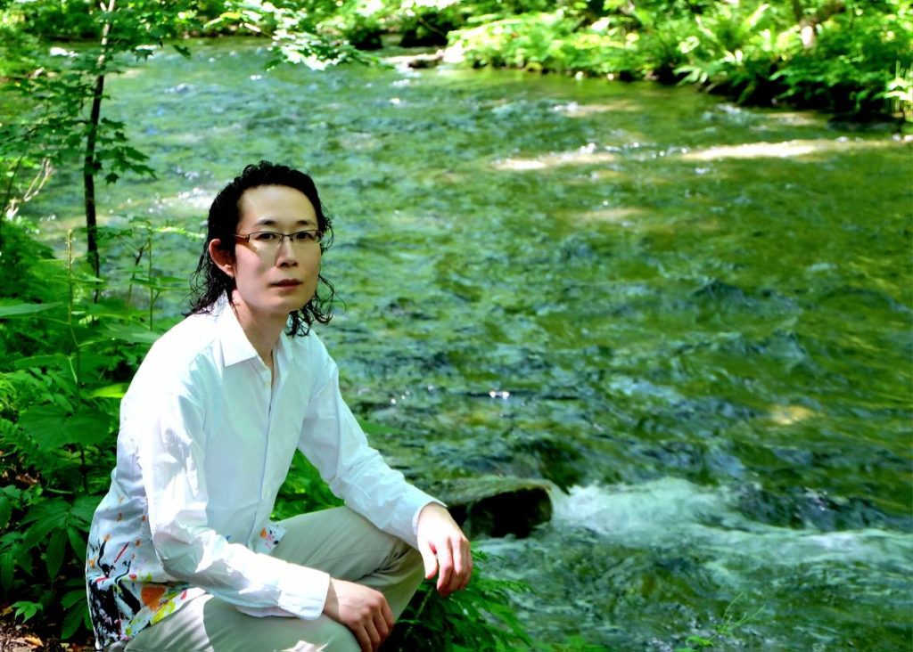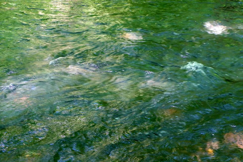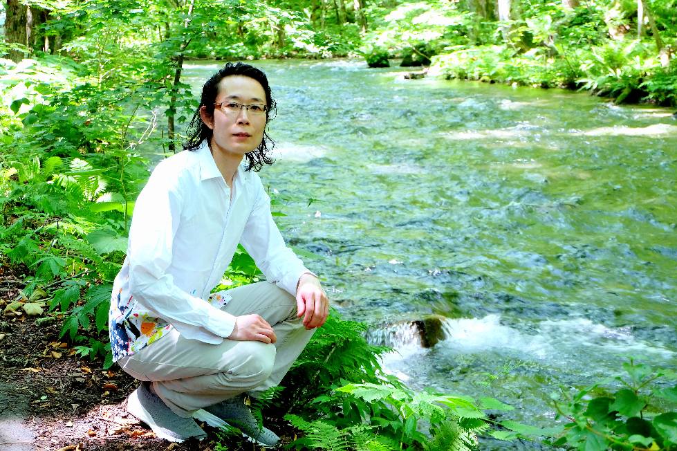 川風の中で清水と戯れる