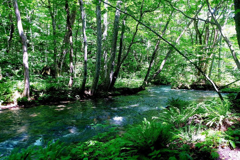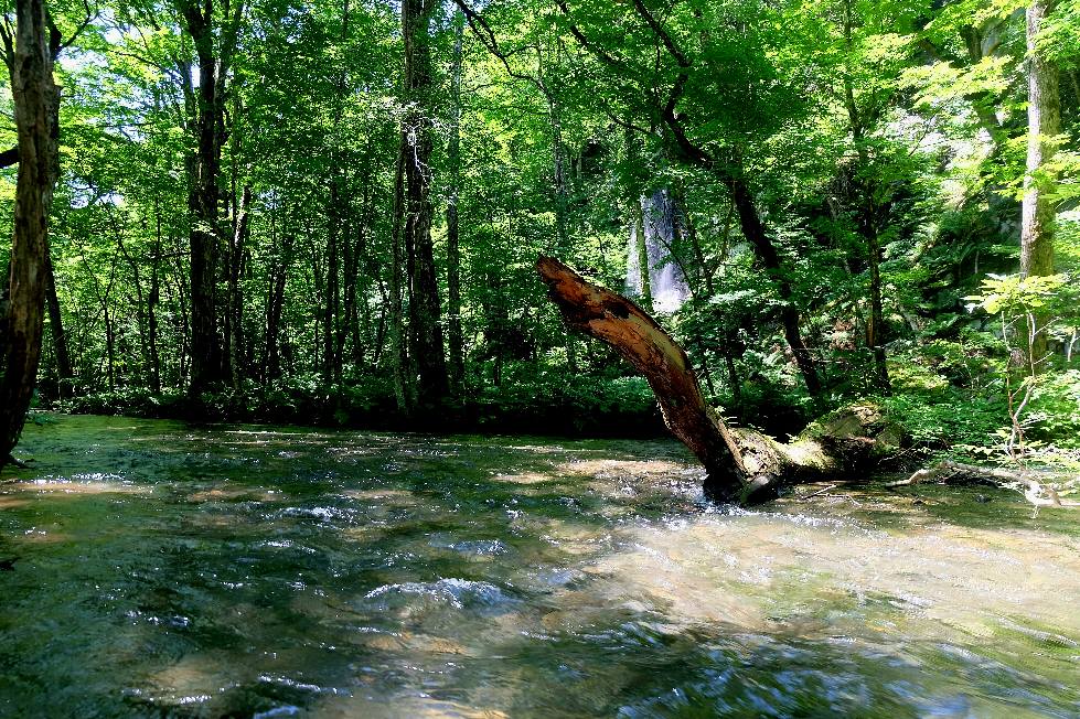 十和田湖を後に、奥入瀬川の渓流沿いに進む
